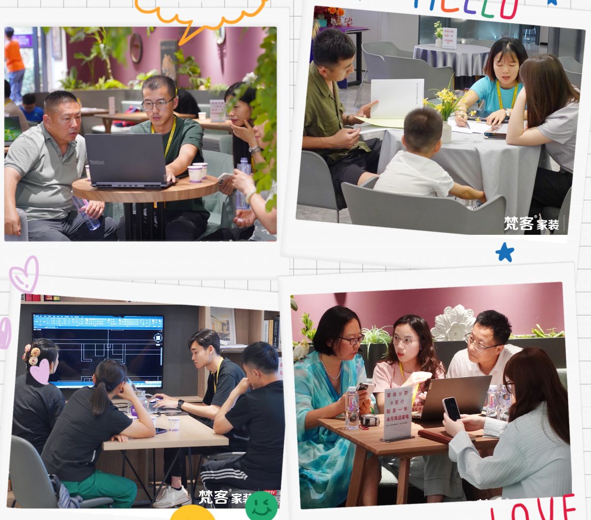 洽談區(qū),設計師正在和業(yè)主交流方案,新家的打造離不開專業(yè)設計師的全程服務,從方案出爐到材料選擇,從水電交底到家具進場,每一步都需要專業(yè)人士來把關(guān)。一直以來,梵客家裝都在大量引進人才,培訓上崗,為業(yè)主裝修新家助力。