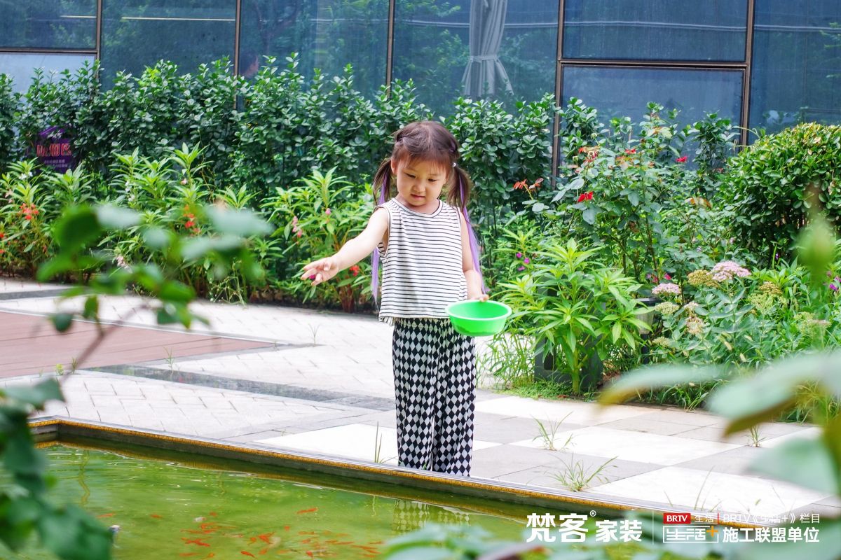 為了給業(yè)主朋友帶來(lái)更舒適愜意體驗(yàn)環(huán)境,梵客家裝的露天花園也重新改造,綠植、花卉更加豐茂,小朋友還可以在魚塘喂魚。
