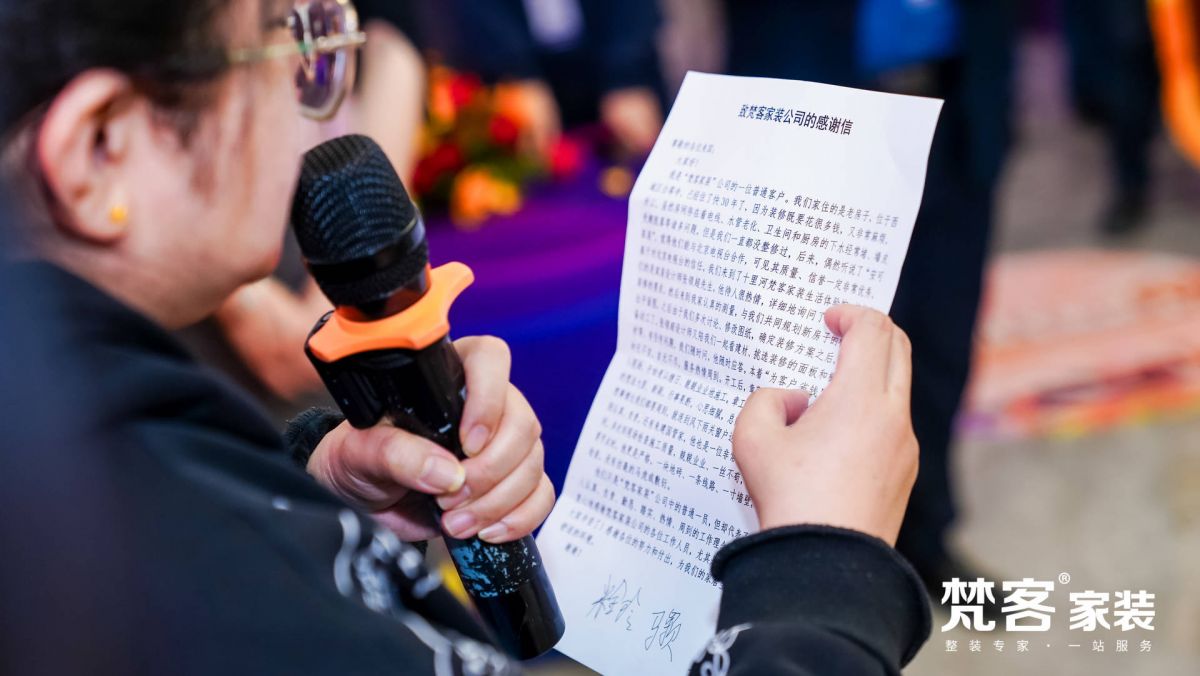 當(dāng)然,也有已經(jīng)裝修好的業(yè)主不辭辛苦送來錦旗,紅底金字閃爍著榮耀光芒;手寫的感謝信,一筆一劃都表達(dá)了對梵客的深情厚誼。