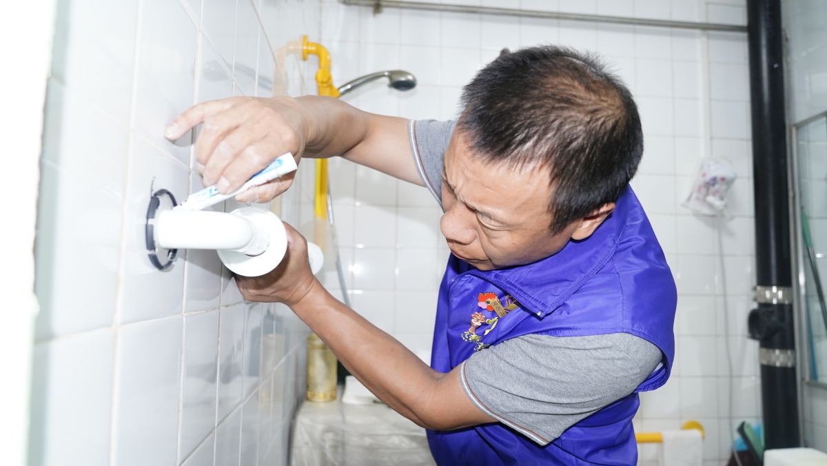 另一位老人是中國人民志愿軍二十三軍七十三師抗美援朝元老的家屬。他們家生活空間狹小,特別是洗手間,因為年邁及腿腳不便,馬桶坐起時非常吃力。志愿團為老人的洗手間安裝了固定在墻上的L型扶手,坐下起身時都能借助到力,大大提高了老人如廁的安全度及方便度。