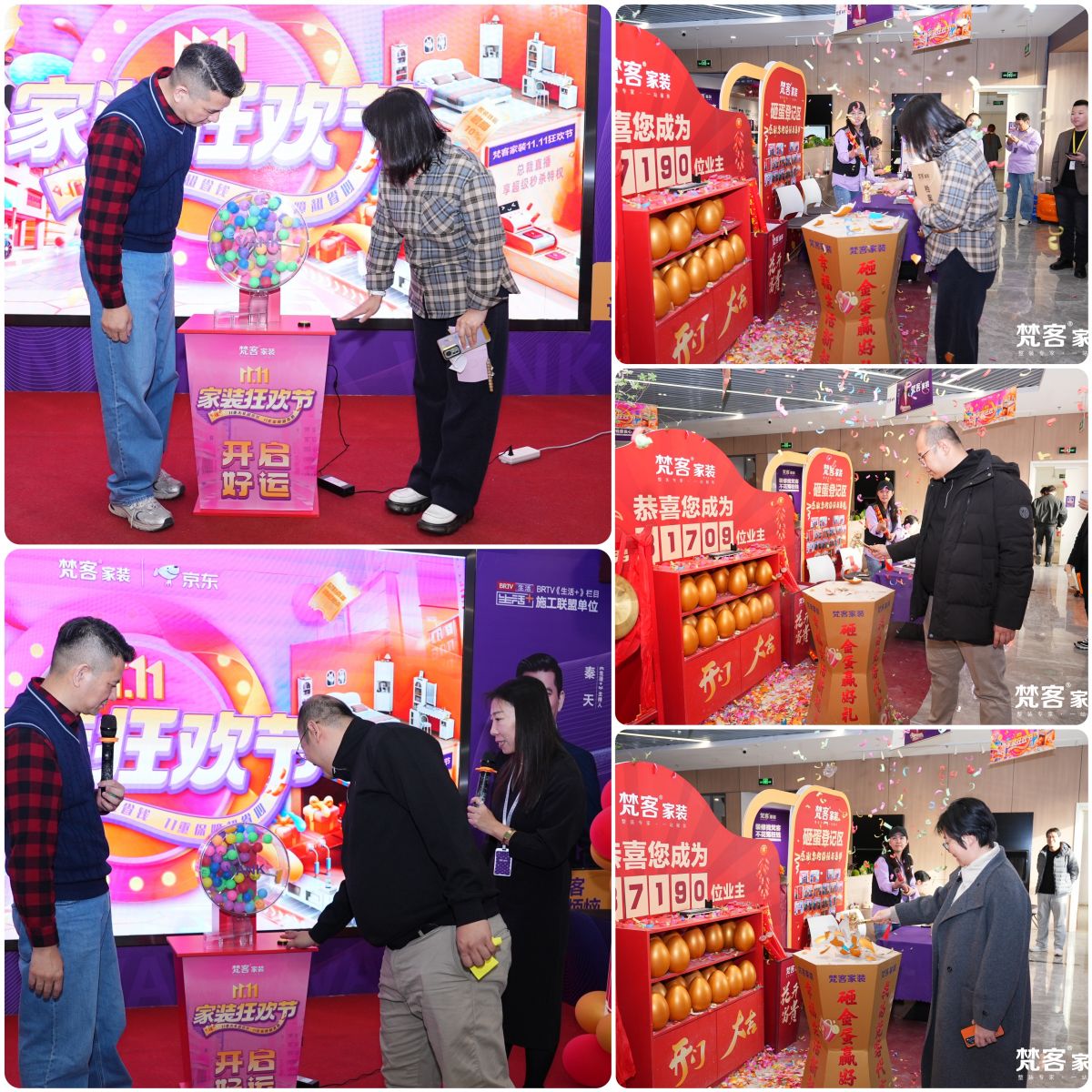 梵客家裝狂歡節(jié),業(yè)主不僅享受到好品質好服務好價格的裝修,還在抽獎區(qū)、砸金蛋區(qū)收獲了額外的驚喜,冰箱彩電洗衣機空調(diào)熱水器等大家電、生活日用小電器…讓贈禮一步到位。