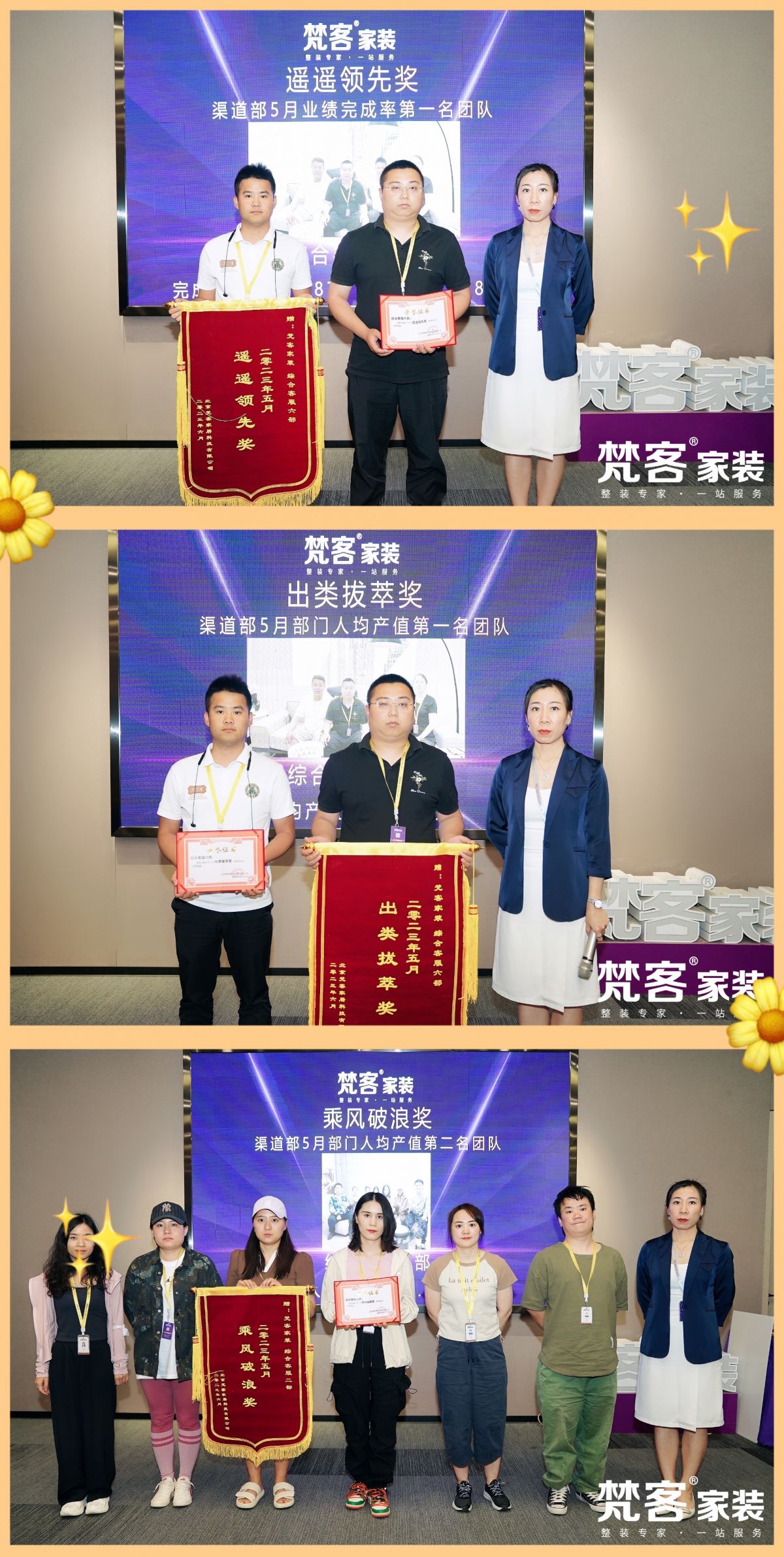 渠道部5月業(yè)績完成率第一名團隊,渠道部5月部門人均產值第一名團隊,渠道部5月部門人均產值第二名團隊,更是“出類拔萃”,只有“乘風破浪”,才能“遙遙領先”。