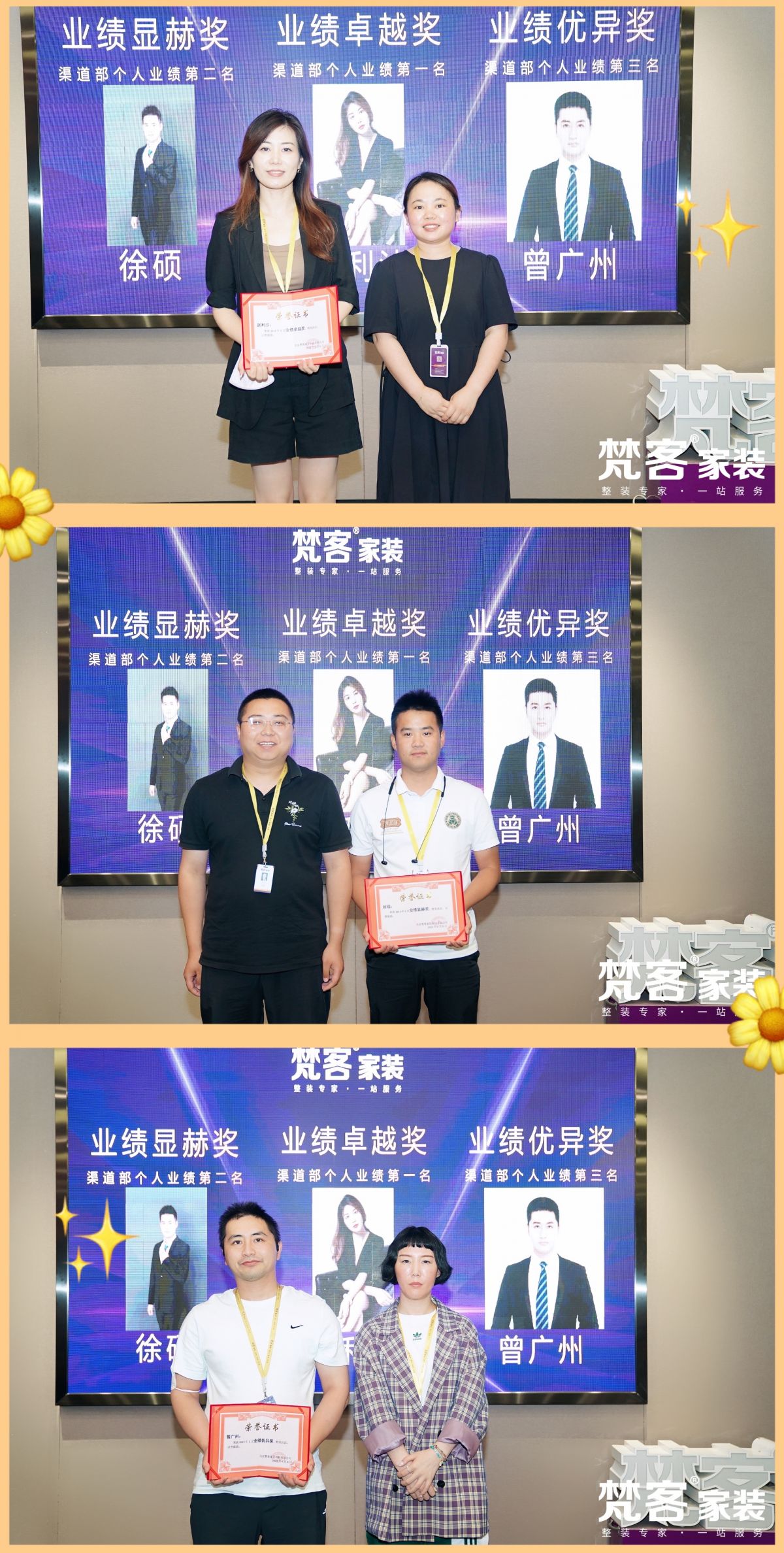 大會的另一個重要環(huán)節(jié):為優(yōu)秀員工頒獎!分別對設計部、渠道部的優(yōu)秀團隊及優(yōu)秀個人進行獎勵。