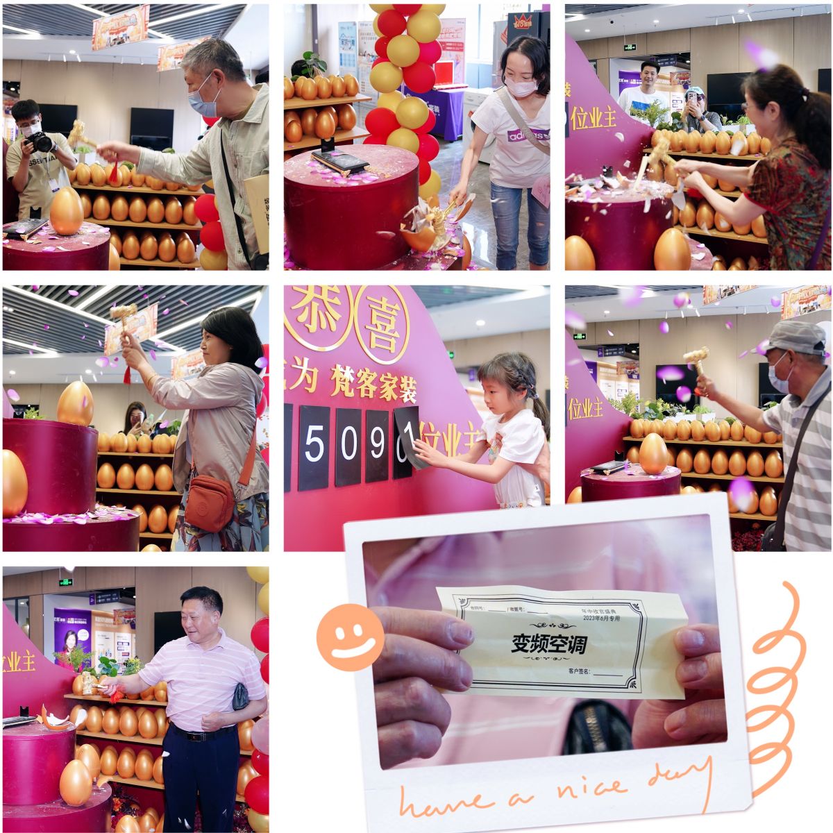 在這一天簽約的業(yè)主,還會享受到更大的福利,那就是由春妮老師主持的砸金蛋贏大獎活動。