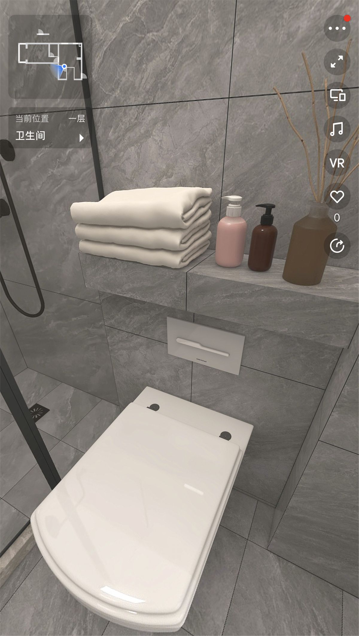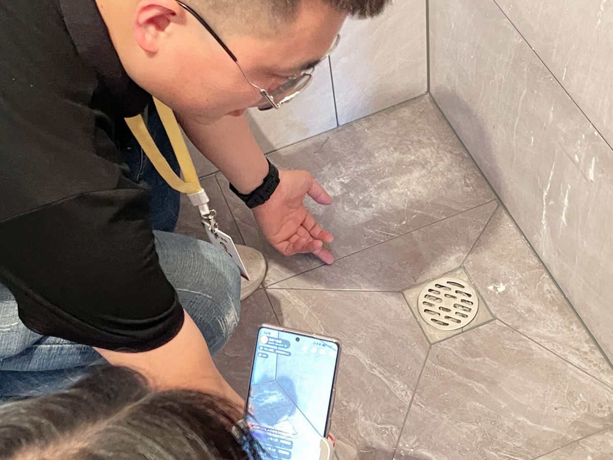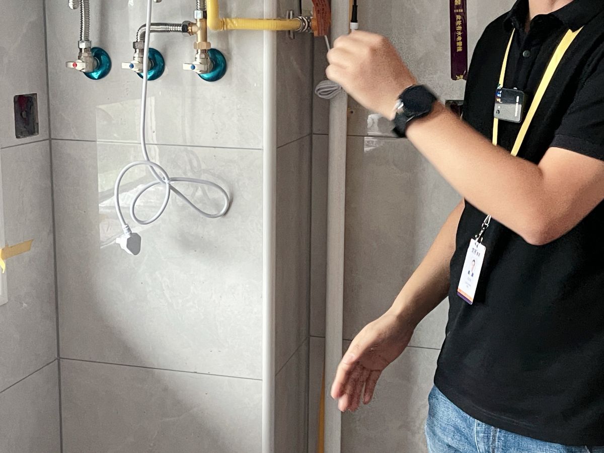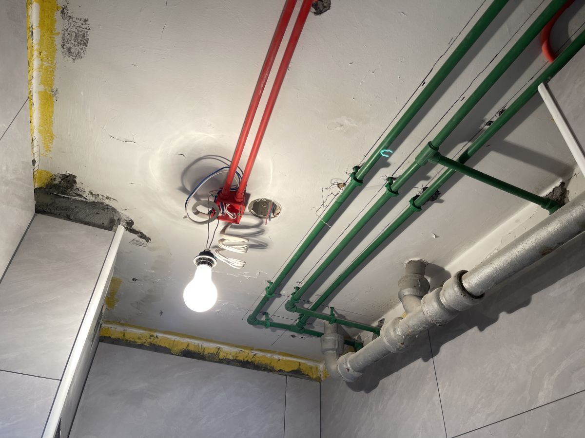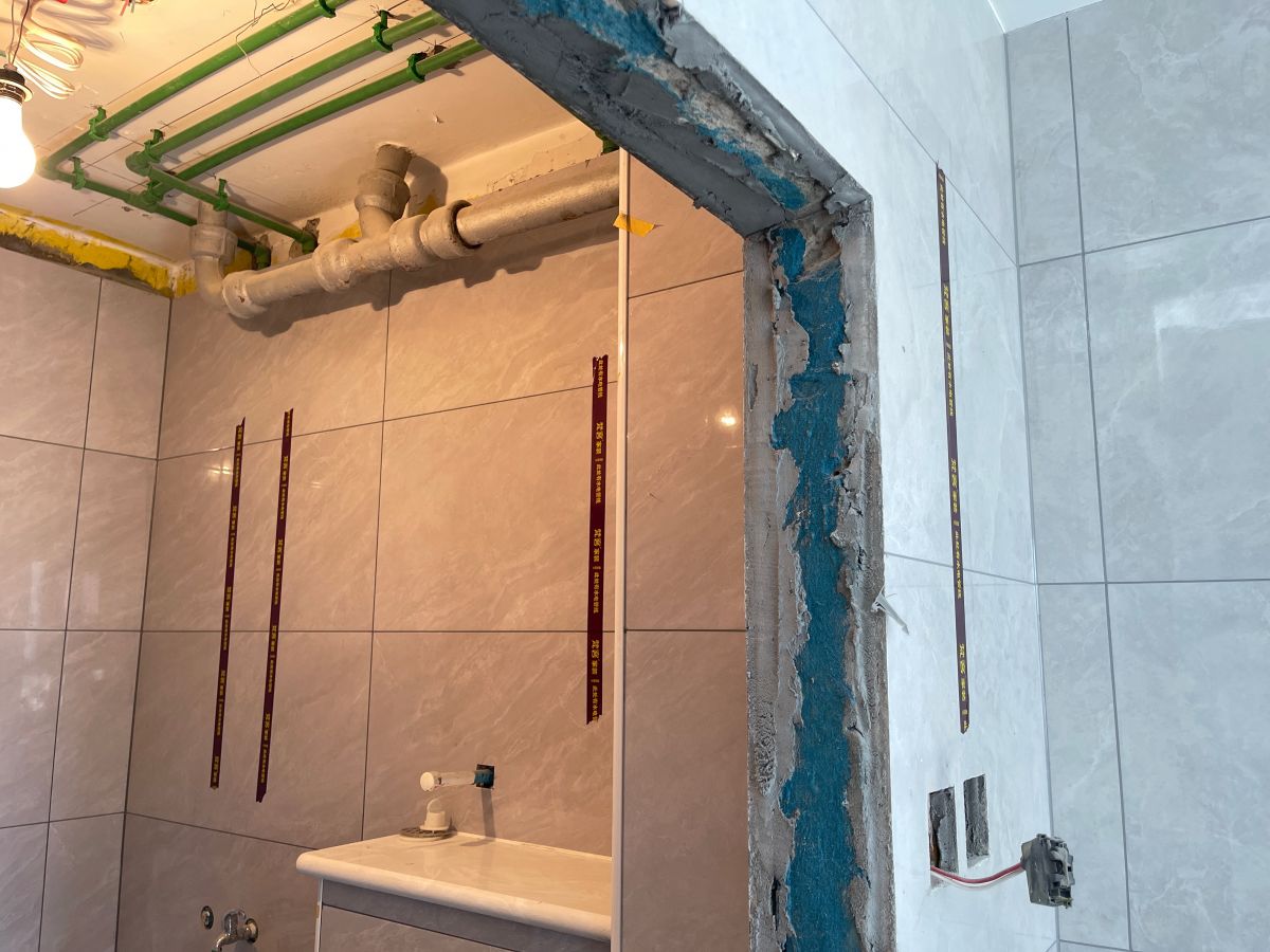↑ 衛生間的工藝,最重要的就是防水,梵客家裝對此有非常嚴格的驗收標準:滿刷1.8米高。如果隔壁空間緊挨墻的是收納柜,衛生間防水會刷到頂。