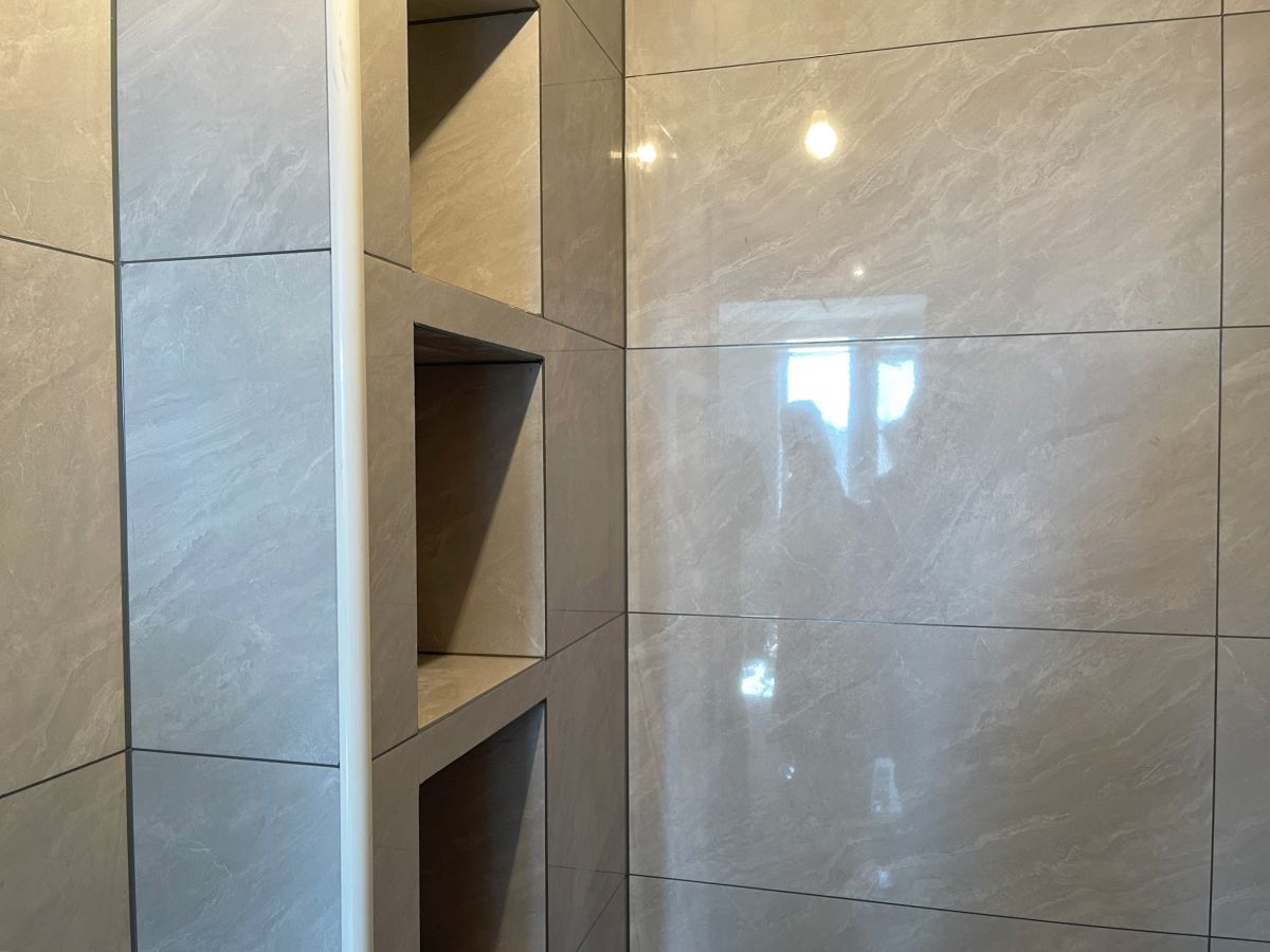 ↓ 壁龕,可以放洗浴用品。工藝上,碰角與圓弧形陽角的結合,視覺上更美觀,使用安全系數也更高,避免磕碰。